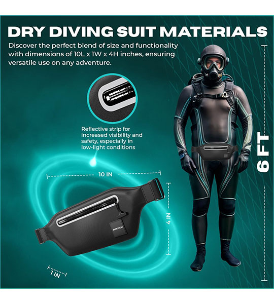 The sleek black IPX8-rated waist pouch is fully submersible up to 4 meters and features an airtight waterproof zipper — the same technology used in professional diving suits. Durable, lightweight, and versatile, it’s built for any environment — from beach days to rugged hikes.