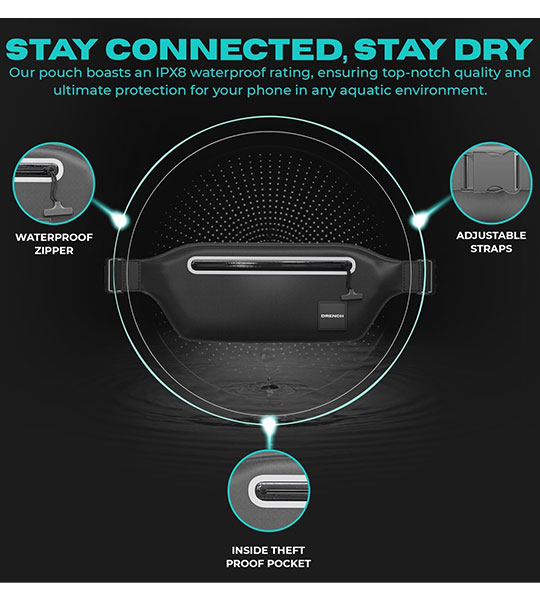 Adventure meets protection with the DRENCH Black Waterproof Waist Pouch and Floating Phone Case Set — designed to keep your essentials dry, secure, and floating no matter where your journey takes you.