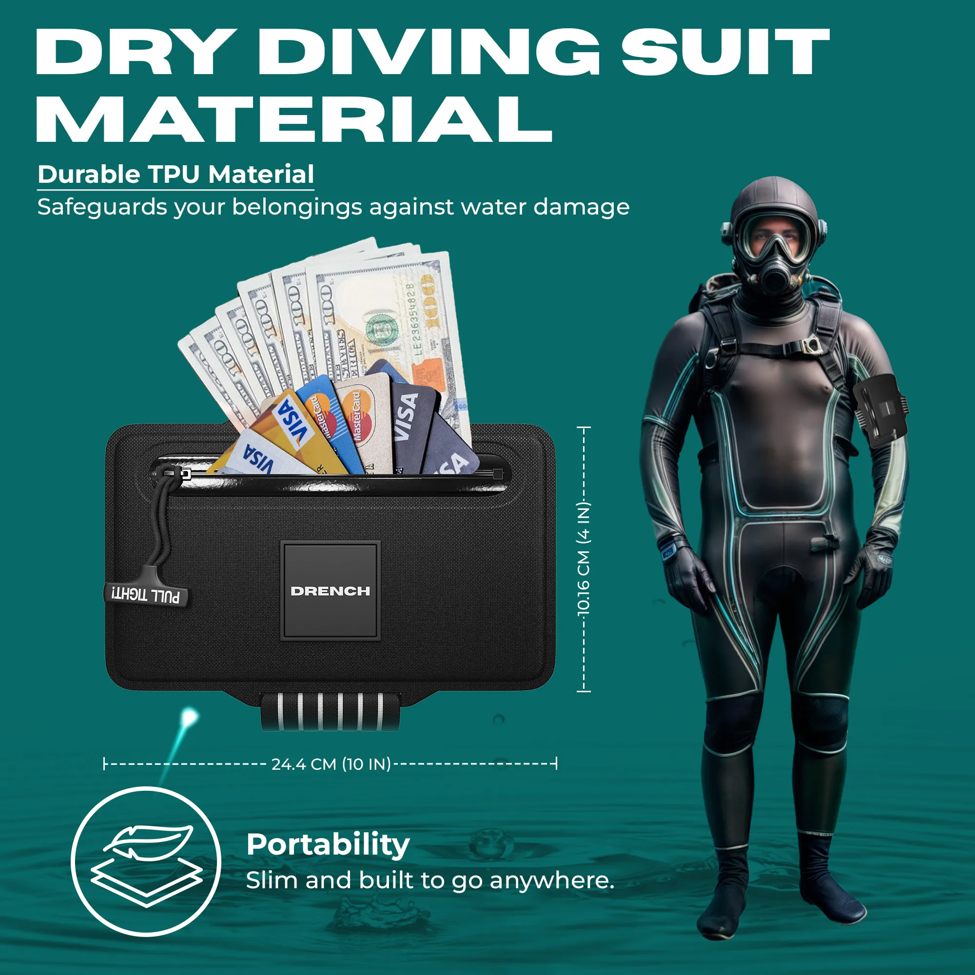 Keep your essentials safe, dry, and secure with the DRENCH Waterproof Wallet — built for travelers, athletes, and adventurers who don’t let water, sand, or sweat slow them down.